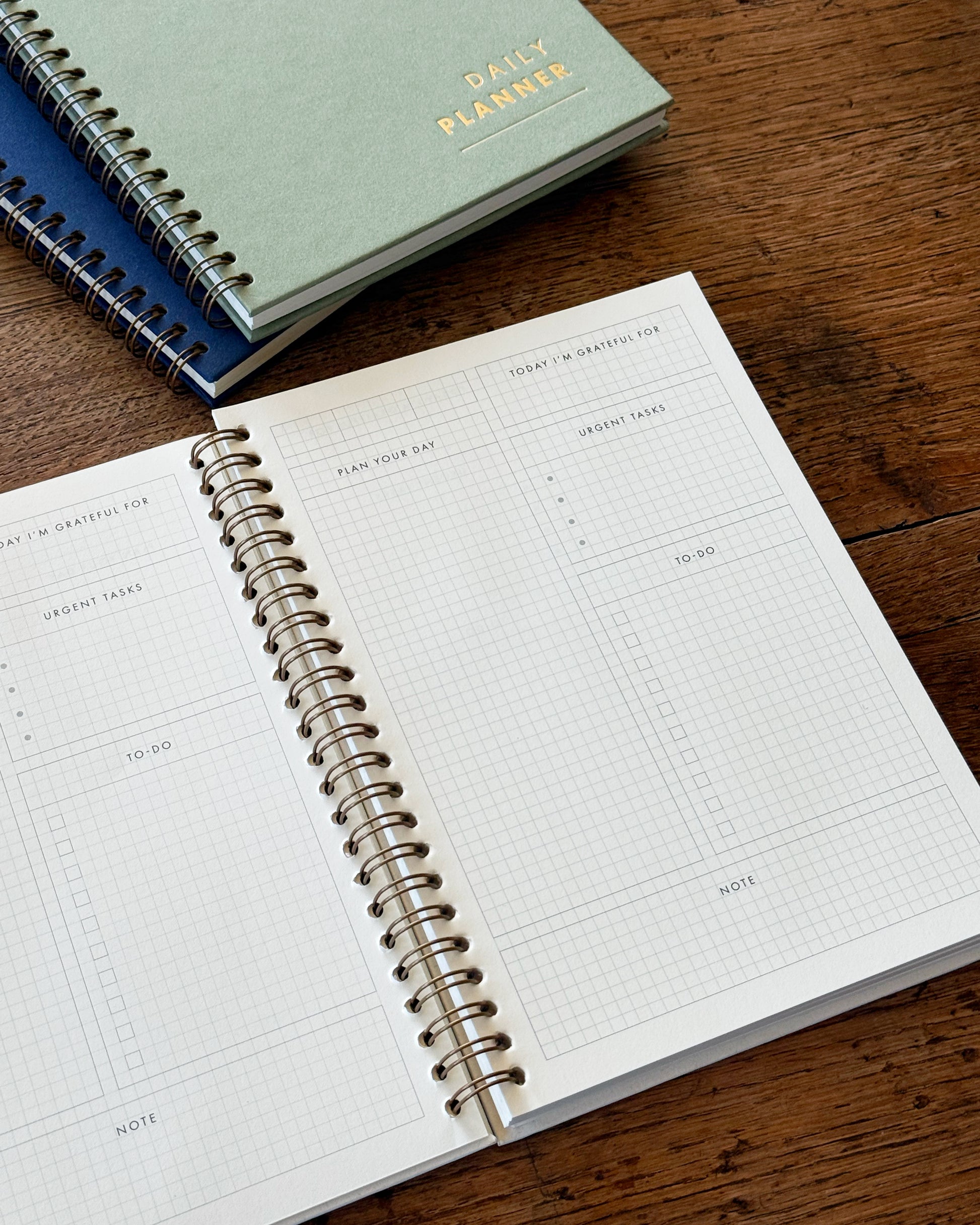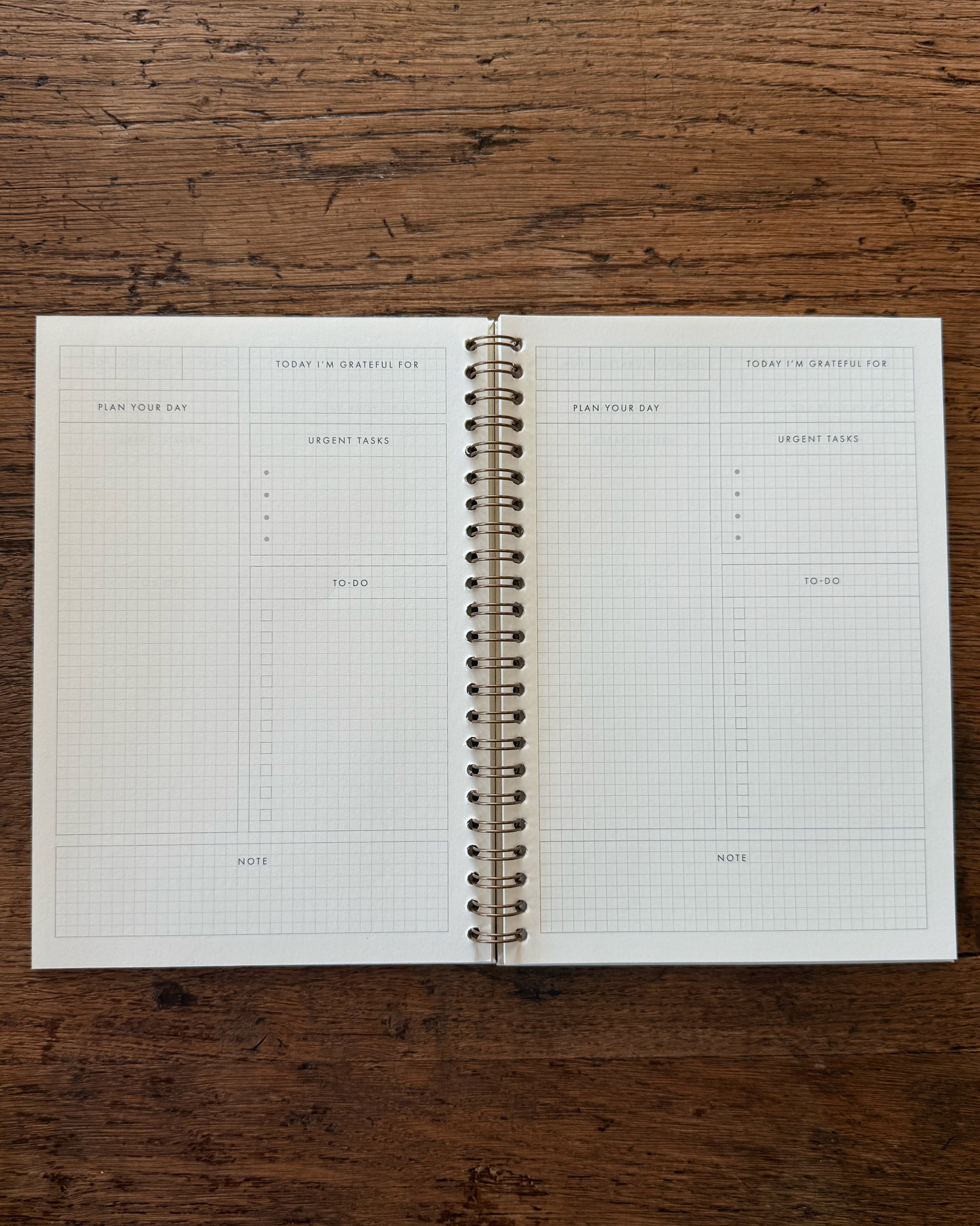 Diseñado para la simplicidad y la productividad, este planificador presenta un diseño repetitivo único para optimizar tu rutina diaria. Cada página te ayuda a reflexionar sobre la gratitud, planificar tu día, priorizar tareas urgentes y organizar tu lista de tareas fácilmente.