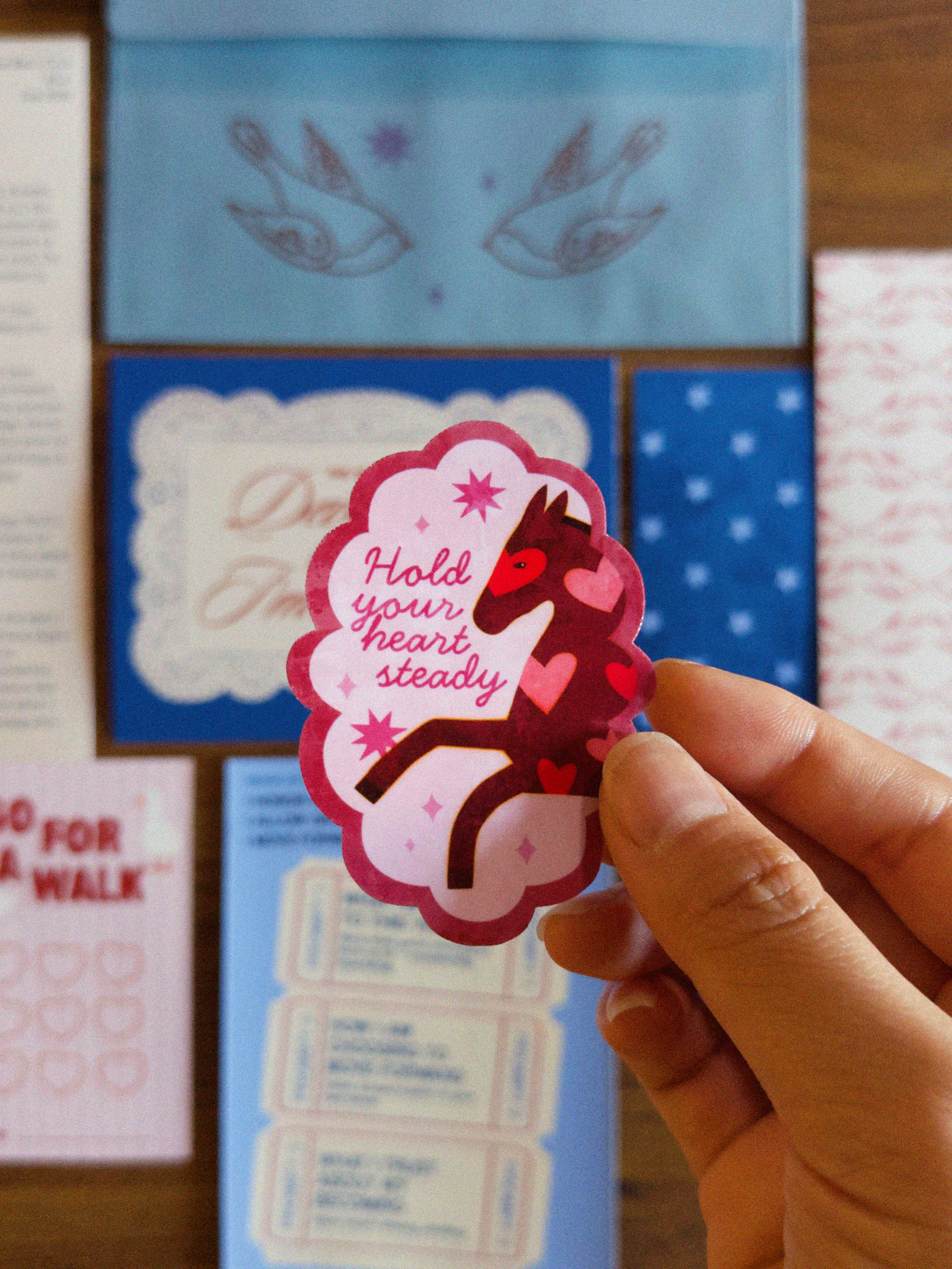 Each month, you’ll receive a thoughtfully curated letter filled with guided prompts, a reflective activity, and art pieces — including two patterned journaling sticker sheets and one exclusive die-cut sticker. Every detail is designed to make writing feel playful, meaningful, and gently inspiring — a soft reminder to slow down, breathe, and come home to yourself on the page.