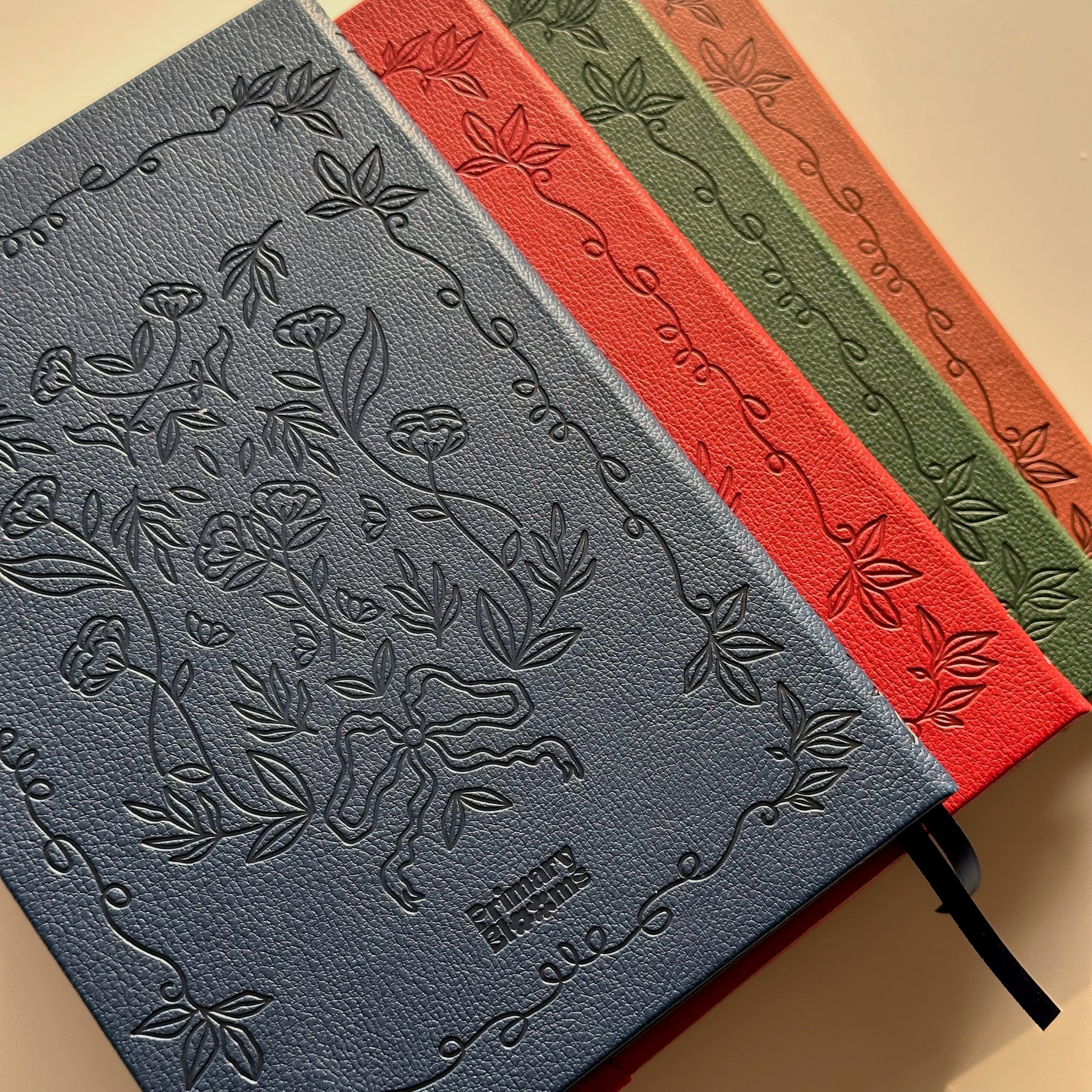 - Made with vegan leather hardcover for a soft, luxe feel, and debossed floral design with elegant gold foil text details.