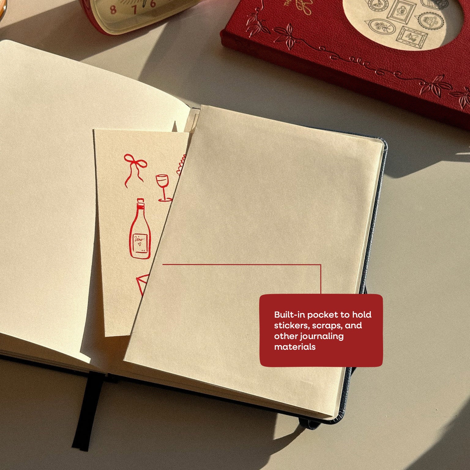 - Back pocket for storing stickers, notes, photos, paper scraps, and keepsakes