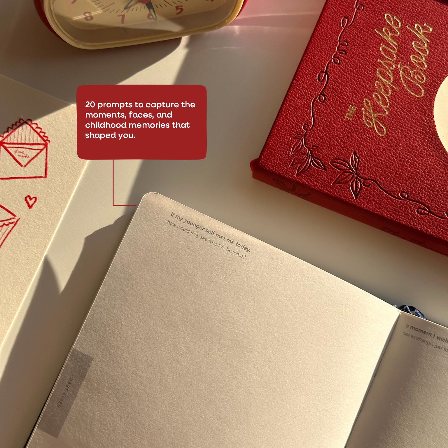 A journal designed to hold your memories, reflections, and the life you’re creating. Thoughtfully structured with a balance of guided prompts and open creative space, The Keepsake Book invites you to look back, express yourself, and move forward with intention.